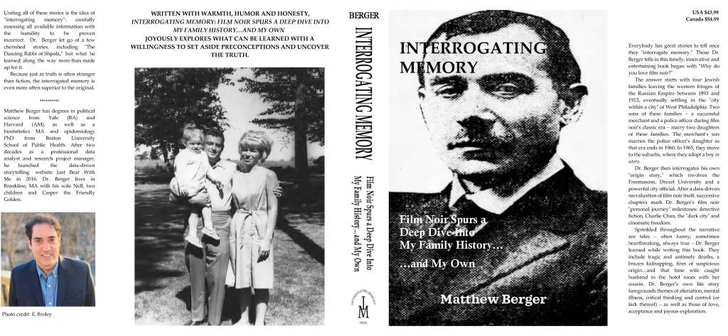 This is also where I promote and sell my books, starting with Interrogating Memory: Film Noir Spurs a Deep Dive Into My Family History…and My Own.