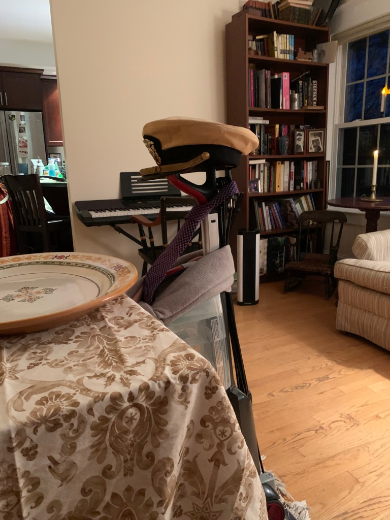 Since 2012, I have been solely responsible – by choice – for cleaning the kitchen, dining room and living room following Thanksgiving meals prepared (mostly) by my wife Nell. In 2015, I prepared a mix on my classic flywheel iPod for the occasion, and I have done so every Thanksgiving since, excepting 2020, when COVID kept the celebration to immediate family. These mixes range from 37 tracks in 2021 to 57 tracks in 2017. Since 2021 the only celebrants have been Nell and I, our two adolescent children and the cousin, an ordained Unitarian Universalist minister, who officiated at our wedding. “The Admiral,” pictured above in November 2023, first joined us in 2021. While a prior commitment in the utility closet kept him from joining us in 2024, we expect him to rejoin our celebration in a few weeks.